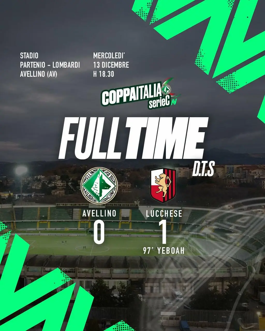 Coppa Italia C: Avellino eliminato dalla Lucchese