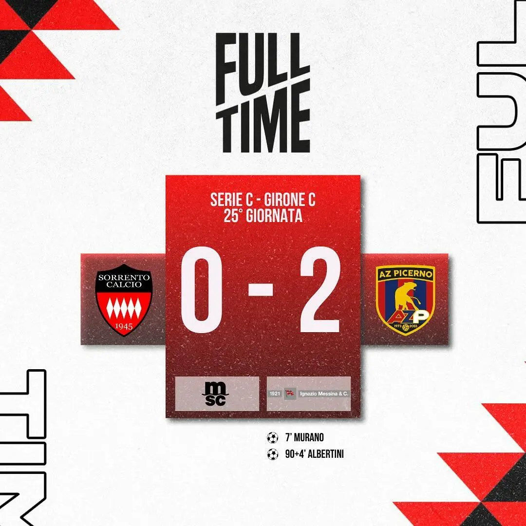Sorrento (4-3-3): Del Sorbo; Todisco, Blondett, Fusco, Loreto (73’ Colombini); Cuccurullo (80’ Messori), De Francesco, Riccardi (62’ Vitale); Badje (80’ Scala), Ravasio, Kolaj (62’ Martignago). A disp.: D’Aniello, Albertazzi, La Monica, Morichelli, Di Somma, Bonavolontà, Vitiello, Capasso. All.: Vincenzo Maiuri