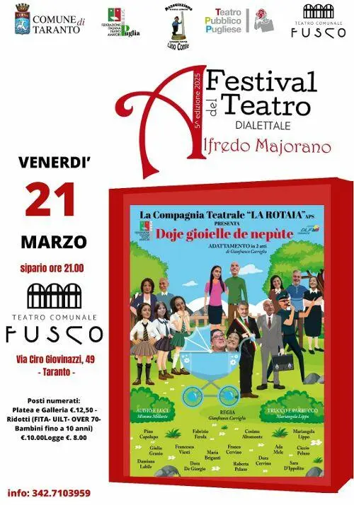 Un'altra serata di grande spettacolo per l'edizione 2025 del Festival del Teatro dialettale "Alfredo Majorano", istituito dal Comune di Taranto e giunto alla quinta stagione, realizzato dall’Associazione Artistico Culturale “Compagnia Teatrale Lino Conte” su mandato della Fita Puglia.
