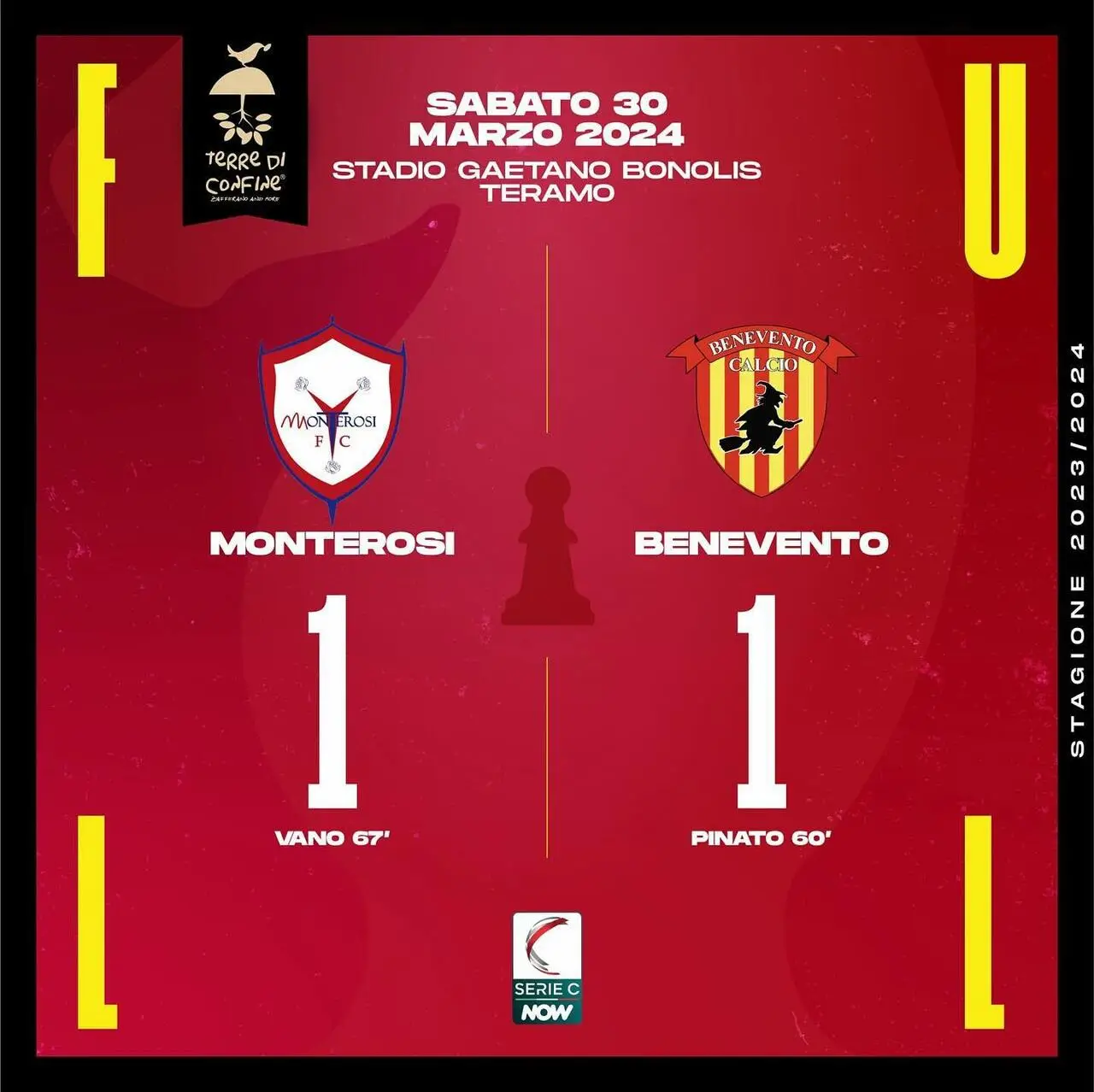 Reti: al 22' st Vano M. (Monterosi Tuscia) al 15' st Pinato M. (Benevento) .