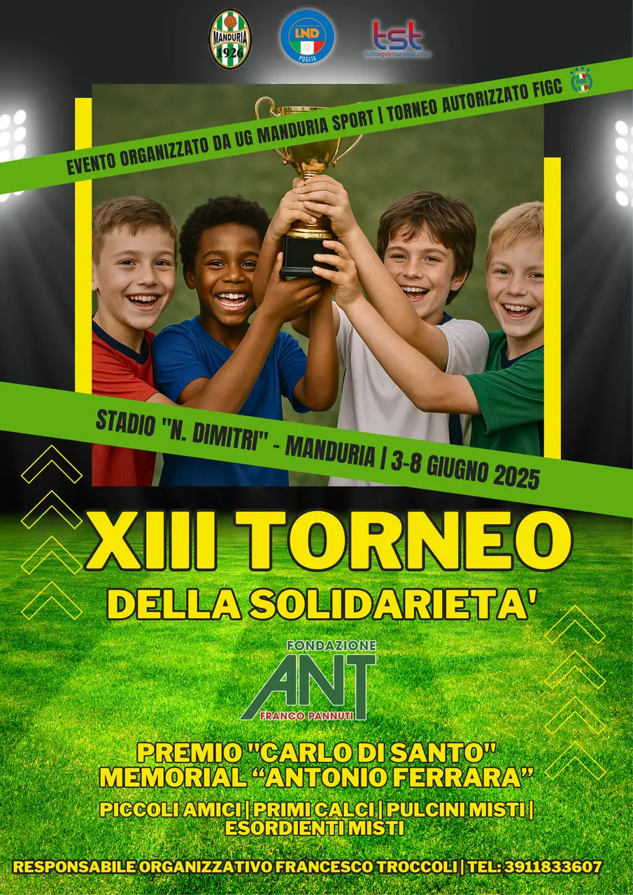 Il Torneo, organizzato anche quest'anno dall'UG Manduria, durante il quale verranno ricordate le figure di Carlo Di Santo e Antonio Ferrara, si conferma non solo un evento sportivo ma anche un forte messaggio di memoria, aggregazione e impegno civile. I proventi dell’iniziativa, come ogni anno, saranno destinati alla Fondazione ANT di Taranto, che si occupa di assistenza domiciliare gratuita ai malati oncologici.