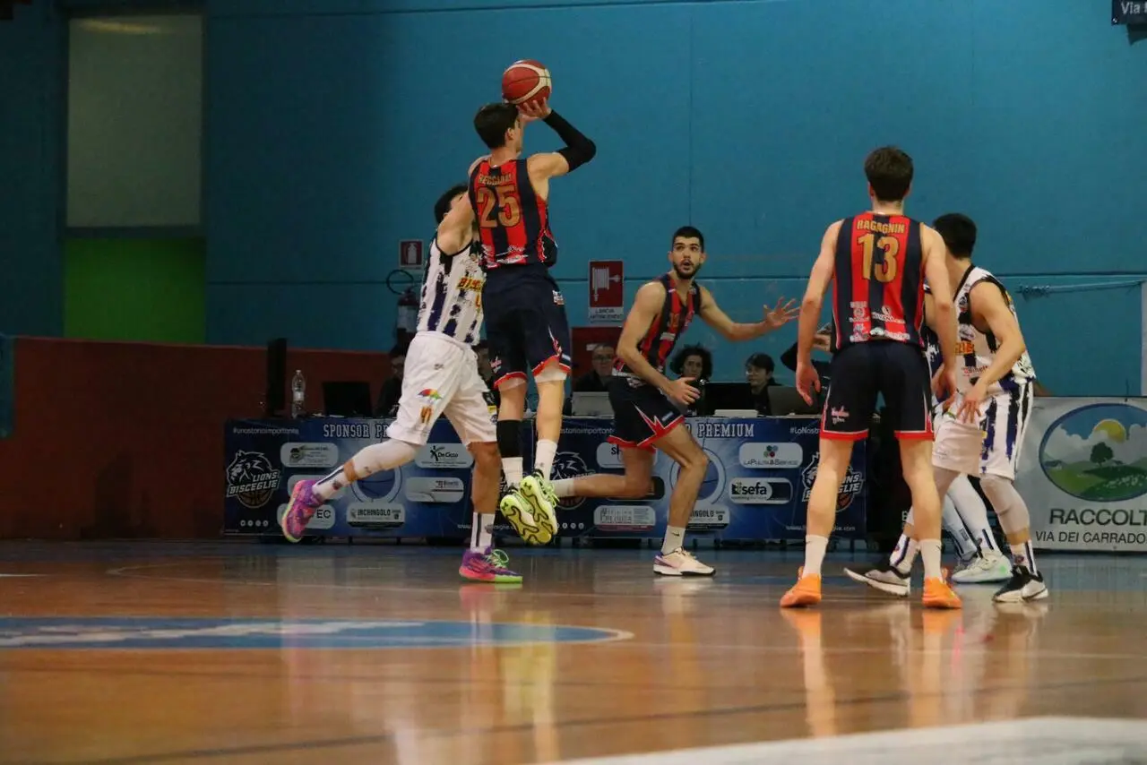 CJ Basket Taranto: Francesco Reggiani 22 (4/11, 4/8), Giovanni Ragagnin 20 (7/14, 2/4), Matteo Chiapparini 16 (4/9, 2/5), Matteo Ambrosin 8 (4/7, 0/4), Martin Kovachev 5 (1/5, 0/1), Eugenio Gigante 1 (0/0, 0/0), Francesco Montanaro 0 (0/0, 0/0), Stefano Pichierri 0 (0/0, 0/0), Matteo Minelli 0 (0/0, 0/0), Jesus Orfino de luca 0 (0/0, 0/0), Gianmarco Conte 0 (0/0, 0/0). All, Cottignoli.