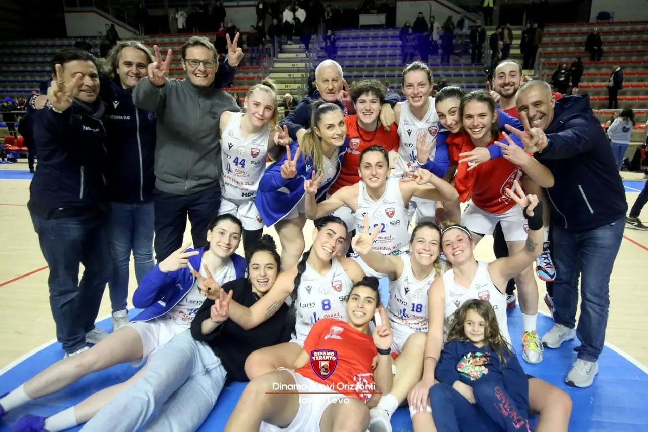Coach Orlando manda in campo Claudia Tagliamento, Natalia Smaliuk, Francesca Gismondi, Alice Lucchesini, Yaroslava Ivaniuk. Diotallevi risponde con Laura Del Sole, Alessia Vitali, Emanuele Trozzola, Benedetta Bocchetti e Contreras Moscarella. Il primo canestro dell’incontro lo firma Ivaniuk. Risponde Moscarella. Poi è botta e risposta tra Tagliamento e Vitali. La stessa Tagliamento, dopo Ivaniuk, firma il primo allungo di Taranto (8-4). Pareggio Campobasso, che alza il pressing a metà campo, prendendo coscienza di poter farsi mettere in seria difficoltà. Poi ci pensa Ivaniuk a guadagnarsi il fallo e i tiri dalla lunetta che realizza entrambi. La tripla di Smaliuk porta a più sei il vantaggio (14-8). È equilibrio fino agli ultimi secondi con il periodo che si chiude in perfetta parità, 19-19. A metà del secondo quarto è capitan Gismondi a dare la carica: la Nuova Orizzonti conduce 29-25. Il match torna in equilibrio. Sale il nervosismo: fioccano gli errori, in questa fase, da entrambe le parti. Sul filo della sirena è Trozzola a chiudere il primo tempo sul 33-31 per Campobasso. Nella ripresa Lucchesini e Tagliamento riportano Taranto in vantaggio. Che cresce grazie sempre a Ivaniuk. Nell’ultimo quarto Varvaglione dalla lunetta e Smaliuk portano la Dinamo al massimo vantaggio della gara (+11, 52-41). La Molisana non ci sta: dapprima dimezza lo svantaggio, poi con un’azione di contropiede di Trozzola si fa sotto, a due soli punti di svantaggio. All’ultimo giro di lancette il punteggio è di 59-56 per Taranto. Un minuto palpitante, nel quale una discutibile decisione arbitrale rimette tutto in discussione. Smaliuk, però, è in stato di grazia: fa due su due dalla lunetta. La tripla di Del Sole mette in apprensione le ragazze di coach Orlando. Ci pensa sempre Smaliuk, ai tiri liberi, a impedire la beffa finale. A far festa è la squadra ionica e il gran pubblico del PalaMazzola. Ovvero gli oltre trecento spettatori che, nonostante l’ora molto tarda, hanno fatto sentire la loro presenza, supportato le ragazze per tutta la gara regalandosi un sabato sera speciale.