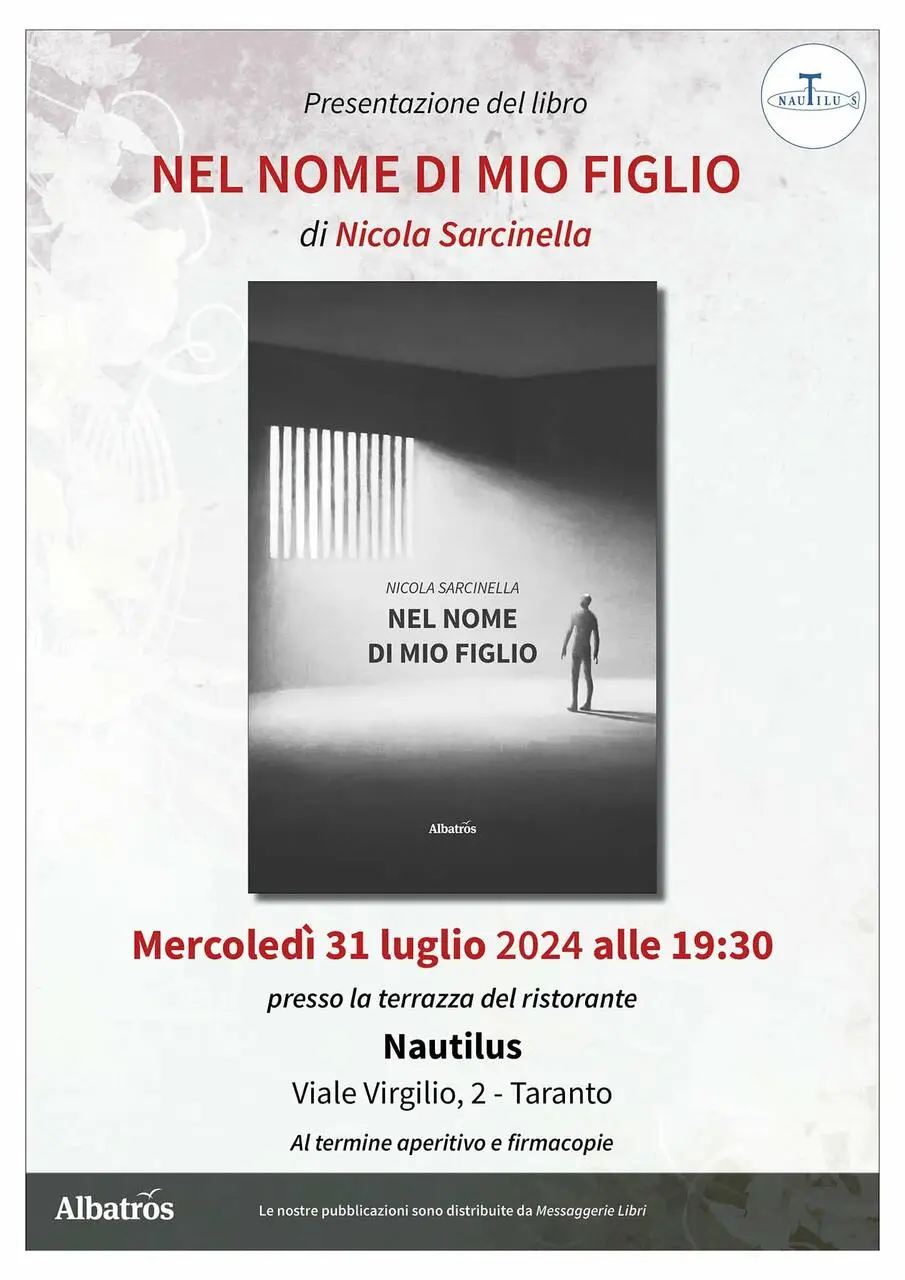 L'evento, organizzato dall'agenzia Primus One di Kristel D'Ursi, si terrà mercoledì 31 luglio a partire dalle ore 19:30 presso la terrazza del ristorante “Nautilus”, in viale Virgilio, 2 a Taranto. Introduce e modera la serata Matteo Schinaia, dialoga con l'autore Tiziana Magrì.