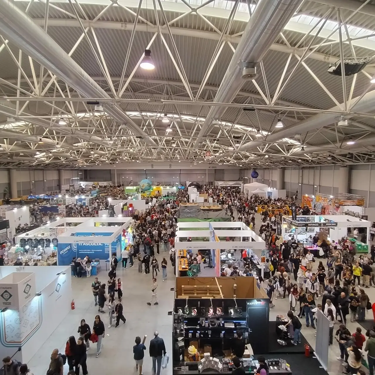 Una visione dall'alto di un padiglione del Romics