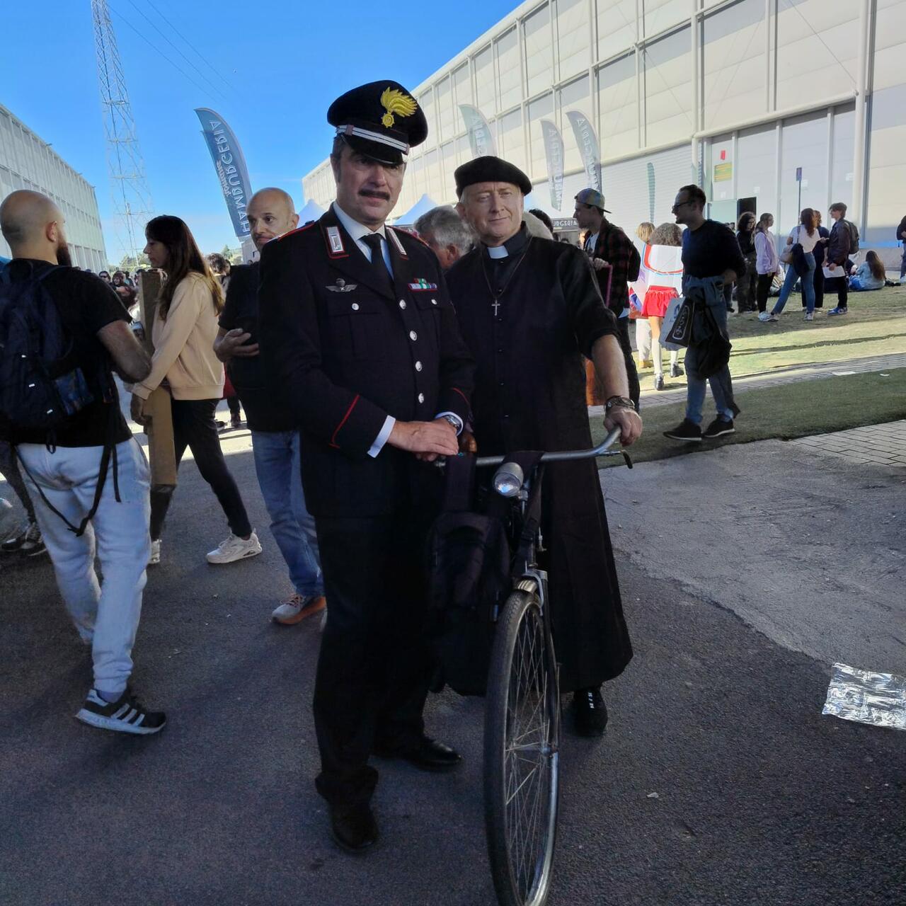 VOGLIAMO REGALARE SORRISI Da uno scenario di guerra a uno molto più pacifico. Parrocchiale-investigativo, meglio ancora. Uno strepitoso doppio cosplay (foto sopra) di Don Matteo e del maresciallo Nino Cecchini, infatti, catturano inevitabilmente la nostra attenzione. A interpretarli sono Gianluca e Calogero (in arte Nino) di Roma. «Questo cosplay nasce dall'evoluzione di nostre altre tipologie di cosplay che incarnano il personaggio che facciamo adesso – inizia a spiegare Calogero - diciamo che ci evolviamo in base ai personaggi. Abbiamo optato per due personaggi più anzianotti, visto che l'età passa per tutti. E così, dopo aver fatto Trinità lo scorso anno, quest'anno abbiamo optato per personaggi più attempatelli (Gianluca ride, ndr). Facciamo cosplay dal 2006, sempre legati a realtà del cinema, televisione e libri. Fantasy no, non ci attira molto». I costumi di Calogero e Gianluca sono davvero ben fatti, senza contare il loro “trucco e parrucco” che li ha resi davvero fedeli ai protagonisti del cosplay. E a tal proposito, chiediamo lumi: «I nostri costumi sono fatti su misura da una sarta, con grande attenzione ai dettagli. Prodotti sartoriali con oggetti originali. Curiamo ogni singolo dettaglio, com'è giusto che sia. Cosa ci riserva il futuro? Sicuramente vorremo fare altri personaggi, ma la cosa più importante che ci gratifica maggiormente è regalare sorrisi. E a tal proposito siamo felicissimi che sono in molti a fermarci per chiederci una foto. Nella vita reale ci conosciamo da parecchi anni, facciamo fiere dal 2017. Ed è sempre un piacere». Lo è stato anche per noi.