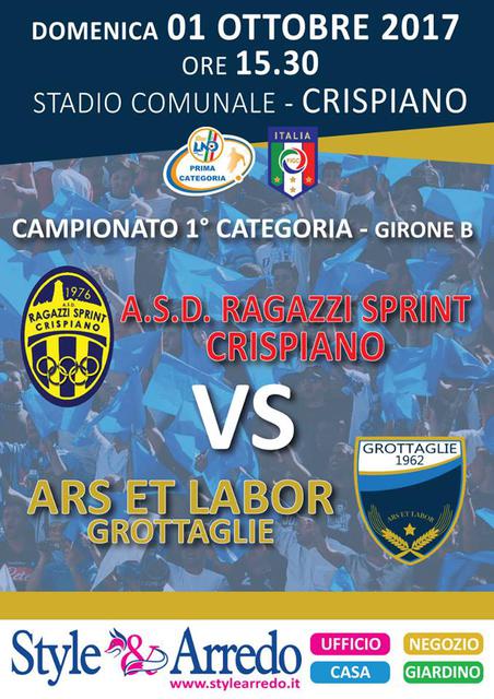 Primo derby di stagione per l’Ars et Labor Grottaglie che domenica, in trasferta, affronterà i Ragazzi Sprint Crispiano sulla terra battuta del comunale. La gara di Crispiano e la prima di tre derby consecutivi per i biancoazzurri che giocheranno in sequenza: contro il San Marzano, in casa, e contro il Manduria, in trasferta. Contro il Crispiano la gara sembra avere un coefficiente di difficoltà assolutamente non trascurabile, i gialloblu vengono da una sonante sconfitta contro la Rutiglianese e hanno voglia di riscatto. I tre goal rimediati nella scorsa giornata gridano vendetta, soprattutto nel modo in cui sono maturati, e domenica contro il Grottaglie, davanti ai propri tifosi, vorranno sicuramente rimettersi in gareggiata. Nel Crispiano rientrano Peluso, attaccante dalla doppia cifra, e Solidoro centrocampista con tanta esperienza e vecchia conoscenza del calcio Grottagliese per essere stato, negli anni della serie D, il capitano dei biancoazzurri. Due pedine fondamentali e frecce in più nell’arco di mister Schiavone. Per l’Ars et Labor si tratta quindi di una trasferta insidiosa, contro una squadra dalla buona qualità che fa dell’agonismo un punto di forza. Il 3 a 1 casalingo contro il Locorotondo ha dato ulteriore fiato al Grottaglie che scenderà in campo, a Crispiano, per fare bottino pieno e portarsi a casa i tre punti. La squadra del patron La Volpe non può prescindere dalla vittoria in ogni partita, ovunque essa si giochi, per fare il salto di qualità serve vincere. Rosa tutta disponibile in casa Grottaglie e scelte ancora non definitive, anche nell’amichevole di metà settimana non sono emerse indicazioni eloquenti. L’arbitro sara’ Paolo Cipriani della sezione di Molfetta.