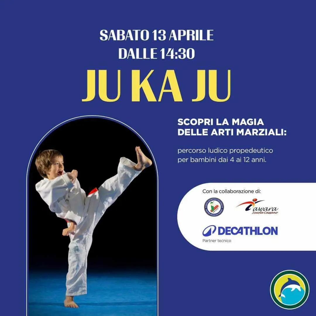Sabato a partire dalle ore 14:30 presso Porte dello Ionio di Taranto, in collaborazione con la Decathlon e la Yawara Scuola Cassano, si terrĂ un grande evento, denominato "Ju Ka Ju", per far conoscere ai bambini dai 4 ai 12 anni, attraverso un percorso luido-propedeutico, il fascino e la magia delle arti marziali.
