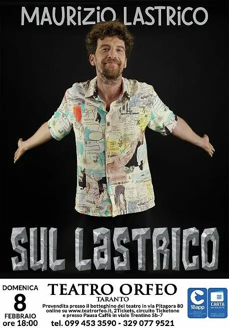Dopo il successo collezionato in tutta Italia, Maurizio Lastrico arriva a Taranto con lo spettacolo “Sul Lastrico”, in scena domenica 8 febbraio alle ore 18 al Cinema Teatro Orfeo, per una data unica.