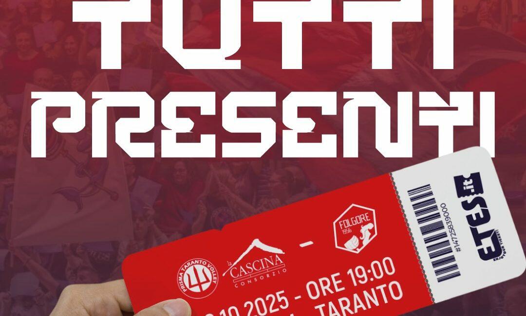 Prisma La Cascina Taranto Volley comunica che dalle ore 12:00 di oggi è attiva la prevendita dei tagliandi relativi all’incontro valevole per la 1° giornata di Serie A2 Credem Banca 2025\26 contro la Romeo Sorrento. L’incontro si terrà Domenica 26 ottobre 2025 alle ore 19.00 presso il Palafiom