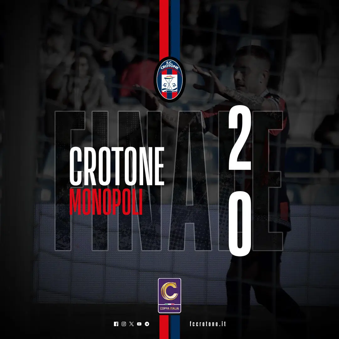 Crotone: Sassi; Guerini (17’st Rispoli), Cargnelutti, Di Pasquale (1’st Armini), Groppelli; Gallo, Vinicius (39st Schirò); Silva (39’st Ricci), Murano (34’st Stronati), Vitale; Gomez. A disp.: D’Alterio, Martino, Cocetta, Pirasi, Cantisani, Vilardi, Oviszach. All. Longo