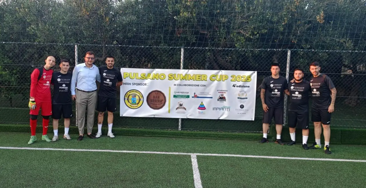 Si è conclusa tra grandi emozioni, bei gol e giocate sublimi la fase a gironi dell’avvincente e ben organizzata da Walter Novellino, Gianluca Tomaselli e Rodolfo Sampietro, Pulsano Summer Cup 2025. Di fatto nel rinomato ed elegante Centro Sportivo pulsanese “L’Ulivo” martedì e mercoledì si sono giocate le ultime gare dei gironi. Nel gruppo A (martedì) larga e convincente vittoria, per 14-4, dell’Elettrica Impianti che passa il turno da seconda in classifica, sul fanalino di coda senza punti Nigro S.A.S. Mattatore del match Versace con ben otto reti. Nel secondo match del gruppo A, vero e proprio big match, arriva la vittoria, per 6-5, dello Studio 23 & Il Valentino sul Panificio San Giorgio. Una bellissima partita con questi ultimi che si sono fatti rimontare un vantaggio di 2-0. Da segnalare la tripletta di Graziano Secondo.