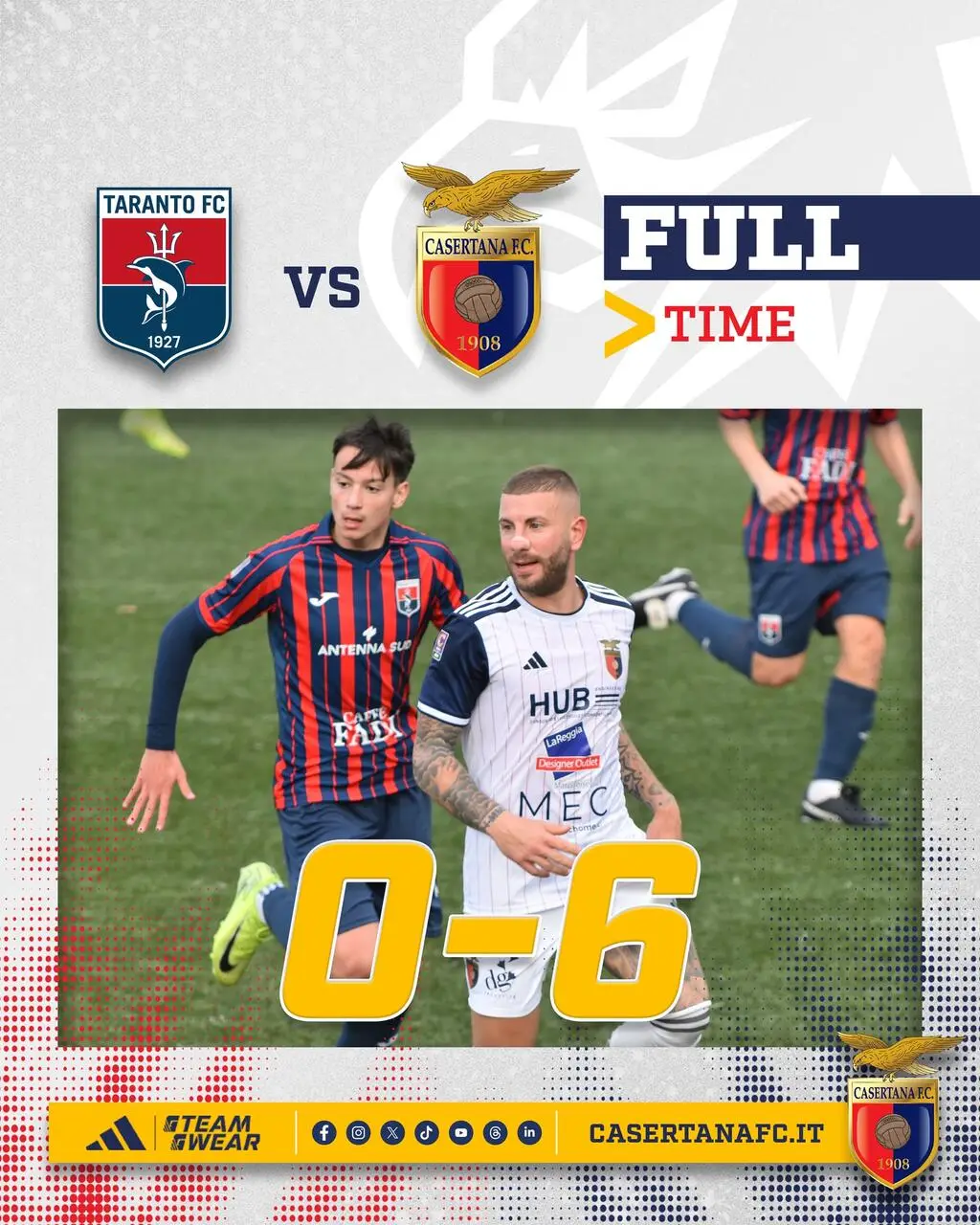 CASERTANA (4-4-2): 1 Zanellati; 3 Fabbri, 4 Kontek (46' 6 Heinz), 5 Llano (66' 37 Falasca), 7 Carretta (46' 77 Capasso); 8 Damian, 9 Bunino, 13 Bacchetti, 19 Collodel (46' 30 Bianchi); 23 Egharevba, 27 Proia (46' 32 Paglino). A disposizione: 12 Pareiko, 22 Vilardi, 18 Deli, 33 Giugno, 44 Gatti, 93 Bakayoko. Allenatore: Pavanel