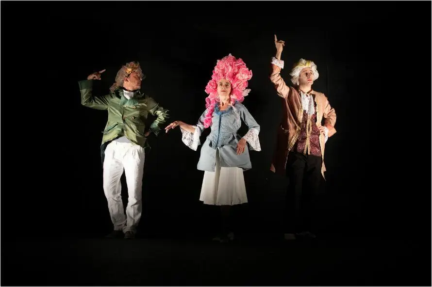 Quel che resta della Rivoluzione ci riguarda ancora, o è roba vecchia, un insieme di parrucche polverose da mettere nei musei? Partendo da questa domanda lo spettacolo prova ad immergersi non nella Storia, ma in un mito fondativo, nei materiali culturali che lo hanno prodotto e che questo ha prodotto a sua volta. Quello degli italiani è uno sguardo da cuginetti d’oltralpe: lo sguardo dei parenti poveri, meno evoluti, da liberare e civilizzare. Perché la Rivoluzione francese non l’abbiamo fatta noi. Anzi, l’abbiamo in parte subita, vedendola intrecciarsi con la nostra storia e l’avvio del Risorgimento, il nostro mito fondativo. Senza dimenticare che il tricolore italiano nasce il 7 gennaio del 1797, in piena Repubblica Cispadana controllata dai francesi.