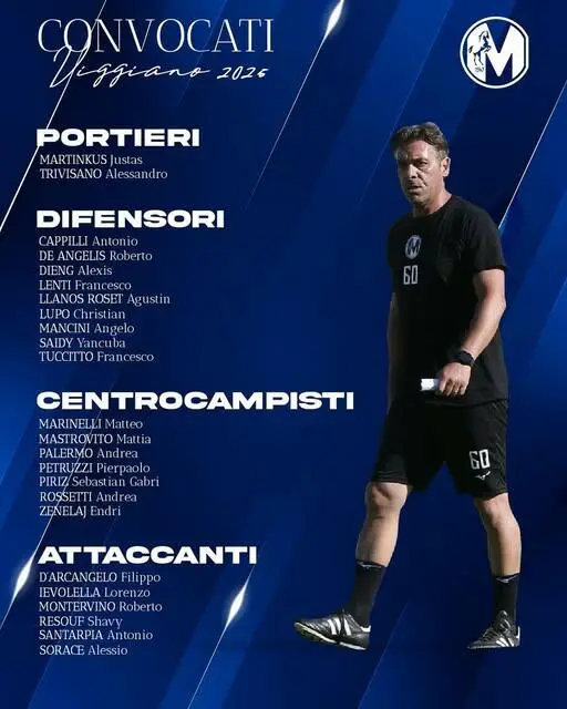 Questi i giocatori biancazzurri convocati da mister Giuseppe Laterza per la seconda parte di preparazione in vista della stagione 2025/2026 e che si svolgerà a partire da oggi sino a mercoledì 13 agosto.