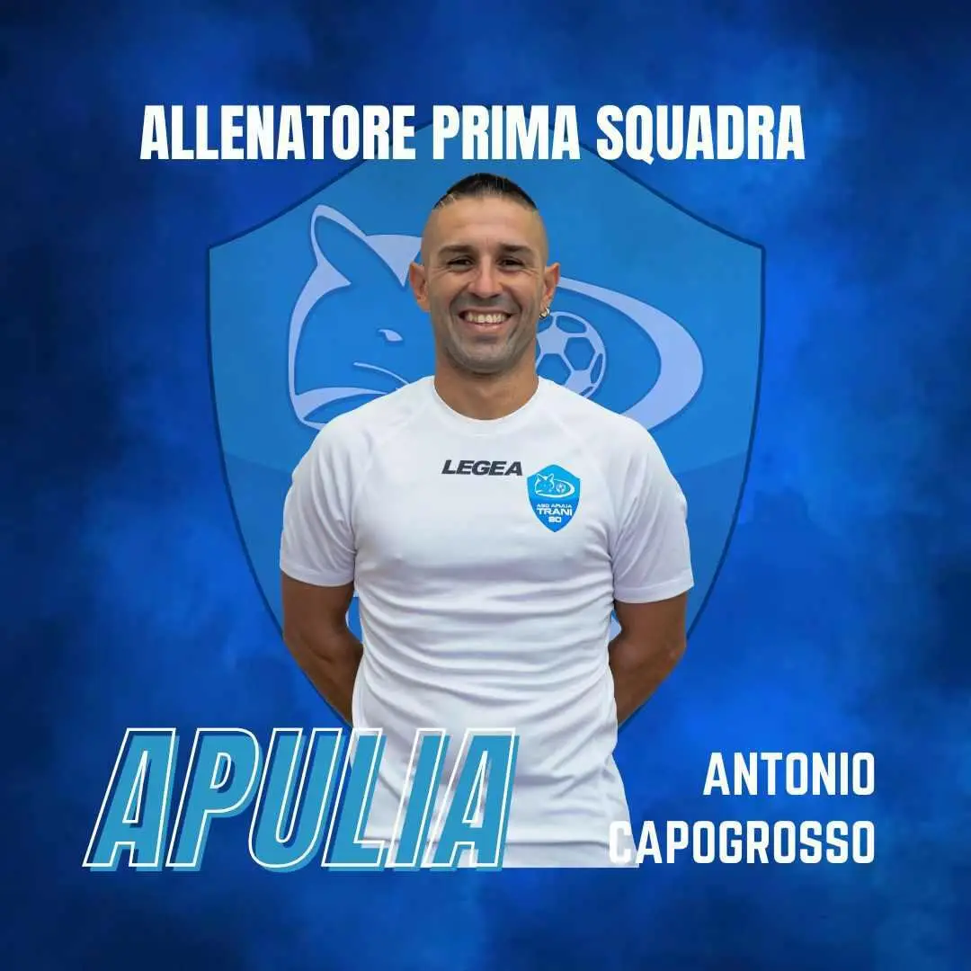 La società dell’Apulia Trani comunica che il tecnico della prima squadra sarà Antonio Capogrosso. Giovane e carismatico ha già fatto parte dell’organigramma del club biancoazzurro nella passata stagione.