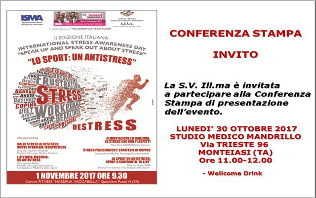 Il 1 novembre l'INTERNATIONAL STRESS AWARENESS DAY a Monteiasi!