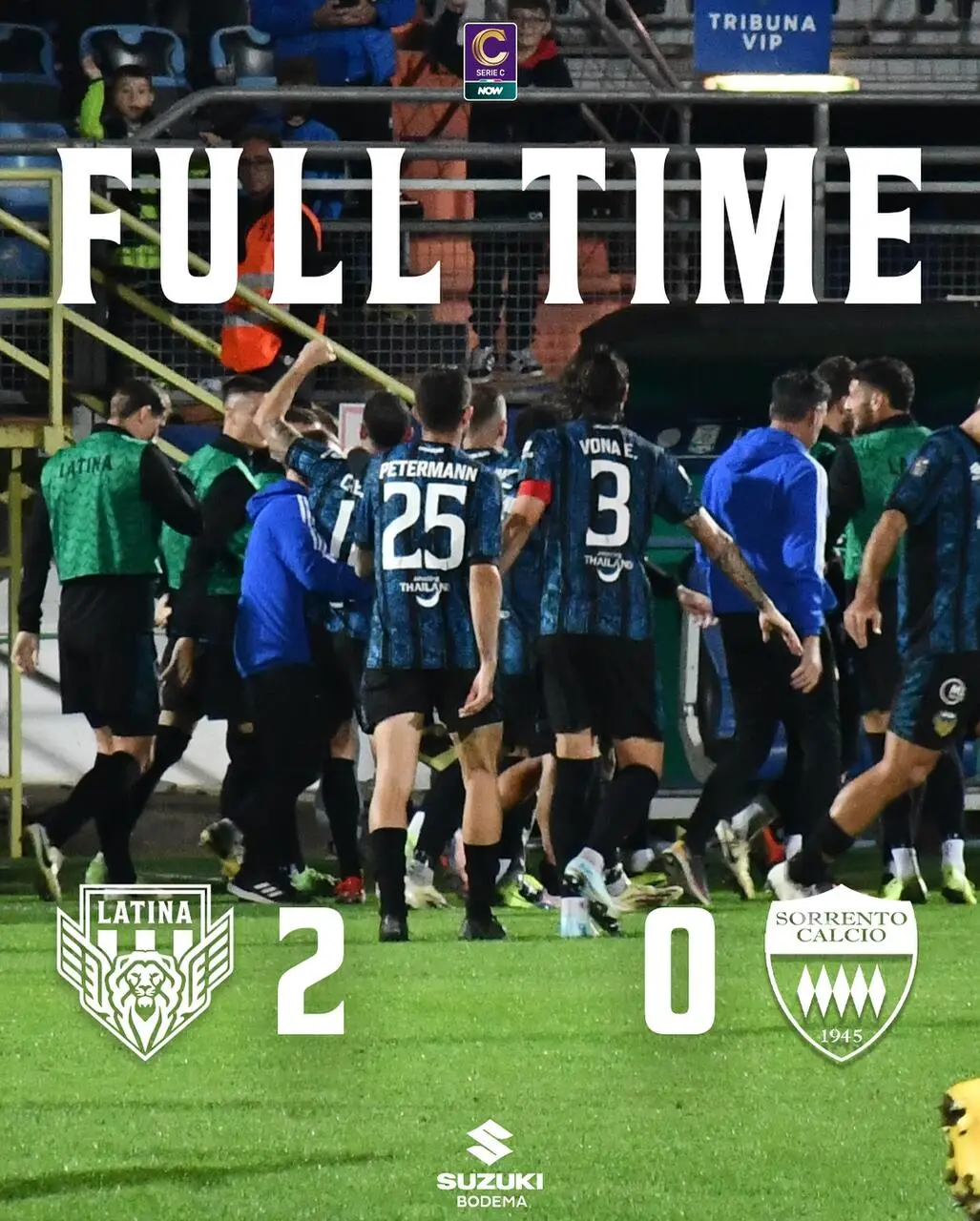 Latina (3-5-2): Zacchi; Berman, Vona, Di Renzo; Ercolano, Di Livio (39' st Ciko), Petermann, Ndoj, Crecco; Improta (39' st Mastroianni), Bocic (25' st A. Riccardi). All. Boscaglia. A disp. Cardinali, Basti, Marenco, Martignago, Addessi, Cittadino, Vona, Saccani