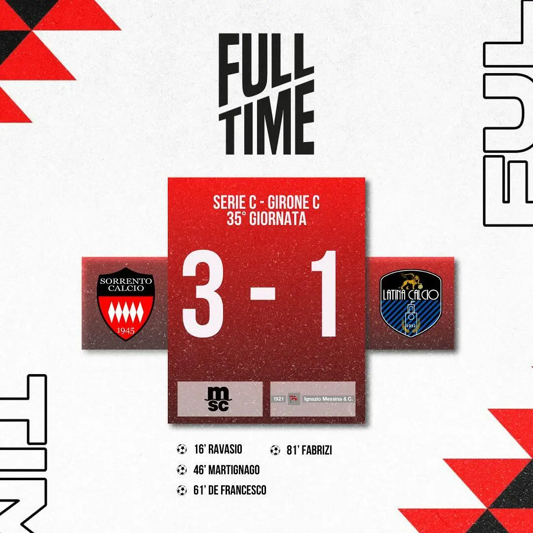 Serie C/C: tre punti fondamentali per il Sorrento che batte il Latina