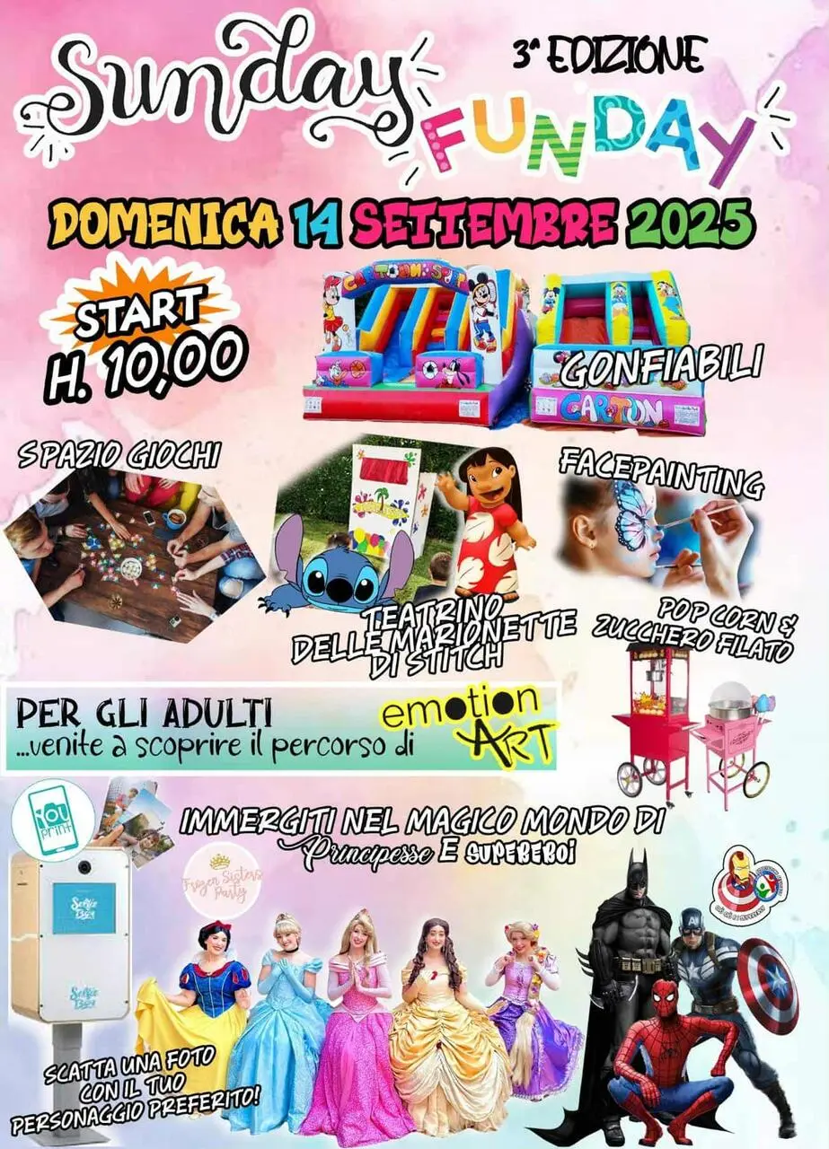 Manca sempre di meno alla terza edizione del Sunday Funday grande evento per grandi e piccini che si terrà domenica 14 settembre con start alle ore 10:00 a Matino. Per l'occasione non potevano mancare i personaggi dell'Associazione Gio' Gio' e i Supereroi: Batman, Captain America e Spider Man avranno la missione di strappare sorrisi ai presenti scattando foto e animando ulteriormente il bellissimo evento che si terrà in terra leccese. Non mancate…
