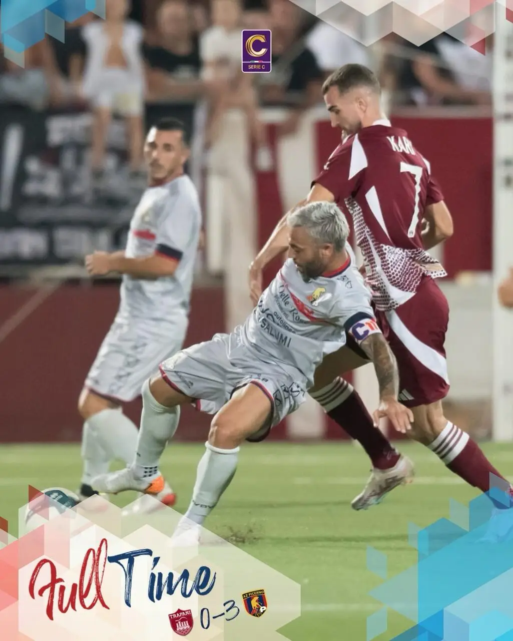 TRAPANI (4-3-3): Seculin; Ciotti (25’ st Zuppel), Sabatino, Gelli, Martina; Karic, Carraro (42’ st Marino), Mastrantonio (1’ st Spini); Kanoute, Lescano, Fall (1’ st Bifulco). In panchina: Ujkay, Salamone, Celiento (1’ st Martina), Marino, Udoh, Spini, Bifulco, Sciortino, Carriero, Valietti, Zuppel, La Commare. Allenatore: Torrisi