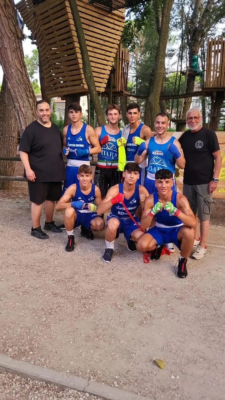 Sono rientrati all'alba dopo la trasferta romagnola i pugili della Quero-Chiloiro che venerdì 27 giugno hanno partecipato alla “Boxe sotto le stelle di Riccione”, la manifestazione che si è svolta al parco Cicchetti nei pressi della movida di viale Ceccarini nell'organizzazione della Boxe Riccione di Ivan Cancellieri, storico amico della società pugilistica tarantina, con la quale ha voluto trascorrere dopo i match un ospitalissimo terzo tempo di condivisione e convivialità. Il risultato della trasferta è stato positivo per i pugili della Quero, accompagnati dai tecnici Cosimo Quero e Cataldo Rapetti, in particolare per l'under 17 66 kg Vittorio Ardito che ha vinto contro Riccardo Bernabucci e per l'under 19 75 kg Francesco Boccasini che ha superato Kevin Ramja, entrambi i tarantini in due belle prestazioni; l'under 17 70 kg Francesco D'Ippolito ha poi ricevuto i complimenti di casa dopo un pari molto stretto con Andrea Kume, mentre ha fatto poco l'under 17 60 kg Mattia Scarano, che ha perso contro Ettore Di Gioia. A completare la squadra “rossoblù”, Luca Castellana della Pugilistica Martina Franca, Mattia Tarì e Pietro Tagliente della Authentic gym di Fasano.