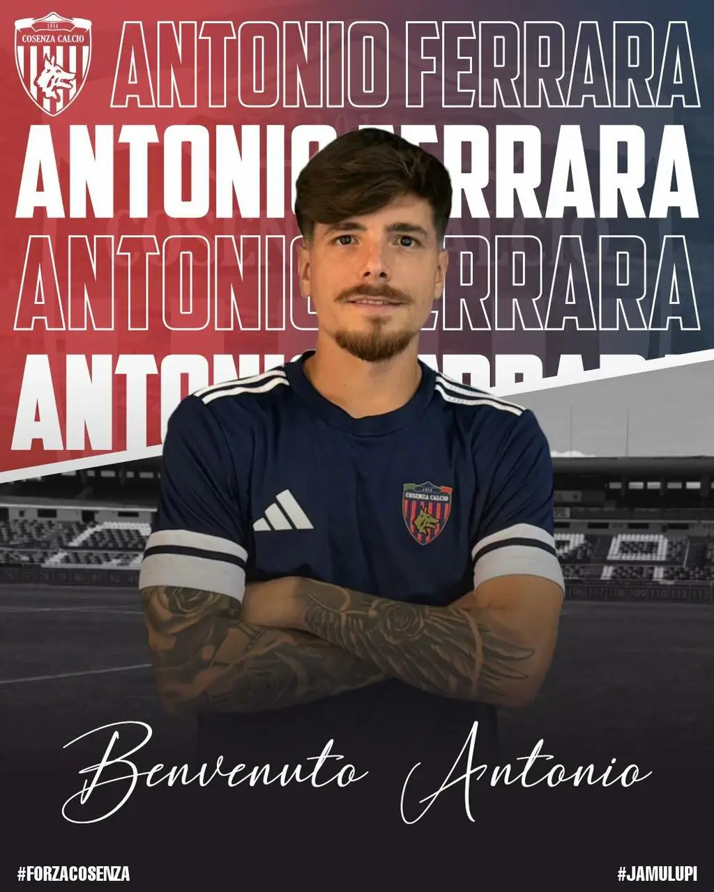 Il Cosenza Calcio comunica di aver acquisito dal Benevento i diritti alle prestazioni sportive del calciatore Antonio Ferrara. Il difensore, nato a Vallo della Lucania il 3 marzo del 1999, ha giocato con i sanniti nell'ultima stagione di Serie C.