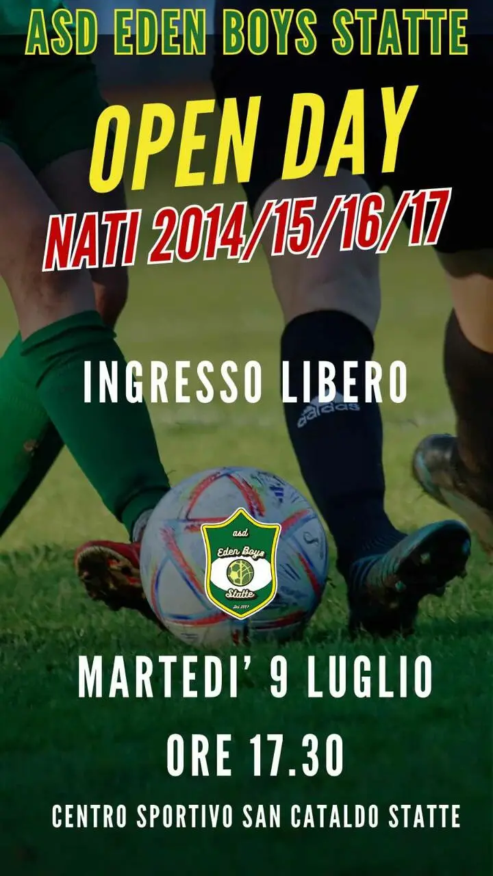 In casa Eden Boys Statte finalmente si riparte con la nuova stagione tanto che martedì 9 luglio presso il Centro Sportivo “San Cataldo”, storica sede delle principali attività del club stattese che nella prossima annata sarà ancora più protagonista vista la ristrutturazione dello stadio Comunale di Statte in vista dei Giochi del Mediterraneo, ci sarà il primo Open Day per il settore scuola calcio per bambini nati nel 2014, 2015, 2016 e 2017. L’Eden Boys Statte punterà tantissimo ancora sulle categorie Piccoli Amici, Primi Calci, Pulcini, Esordienti e Giovanissimi per porre le basi per un futuro nel settore giovanile. Prossimamente ancora novità visto che sarà diramato lo staff tecnico ufficiale del settore calcio per la stagione 2024-25.