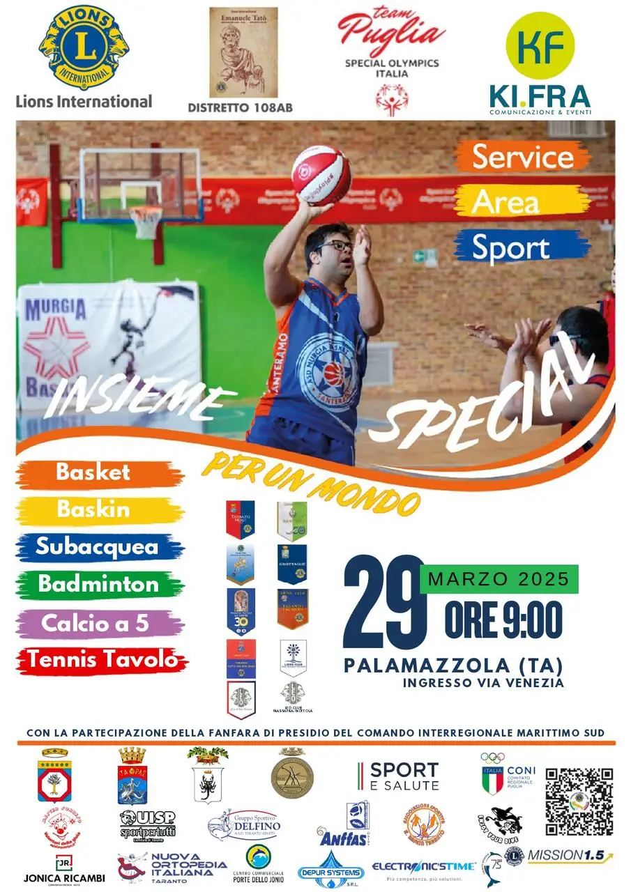 E' iniziato ufficialmente il conto alla rovescia per la prima storica tappa tarantina di “Insieme per un mondo special”, evento di sport ed inclusione organizzato dal Lions Club Taranto Host e altri otto Lions Club della provincia jonica, Special Olympics Italia Team Puglia e Ki.Fra Comunicazione&Eventi, che si svolgerà al Palamazzola di Tarantoil prossimo 29 marzo a partire dalle ore 9:00.