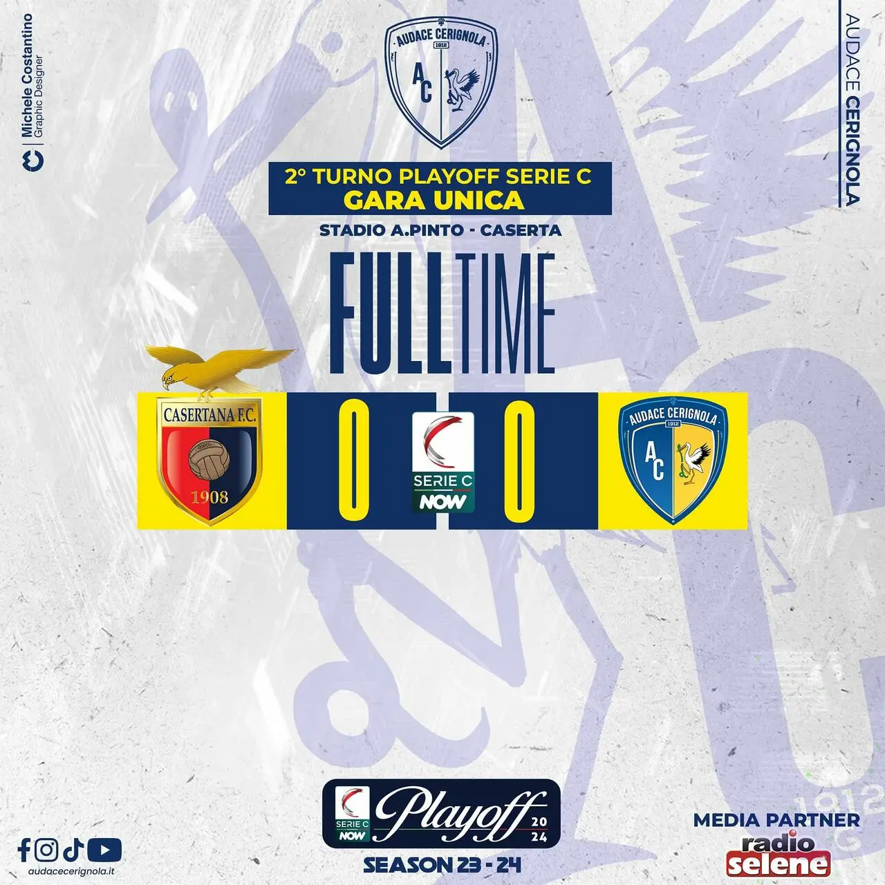 Play off/C: alla Casertana basta un pari per eliminare l'Audace Cerignola