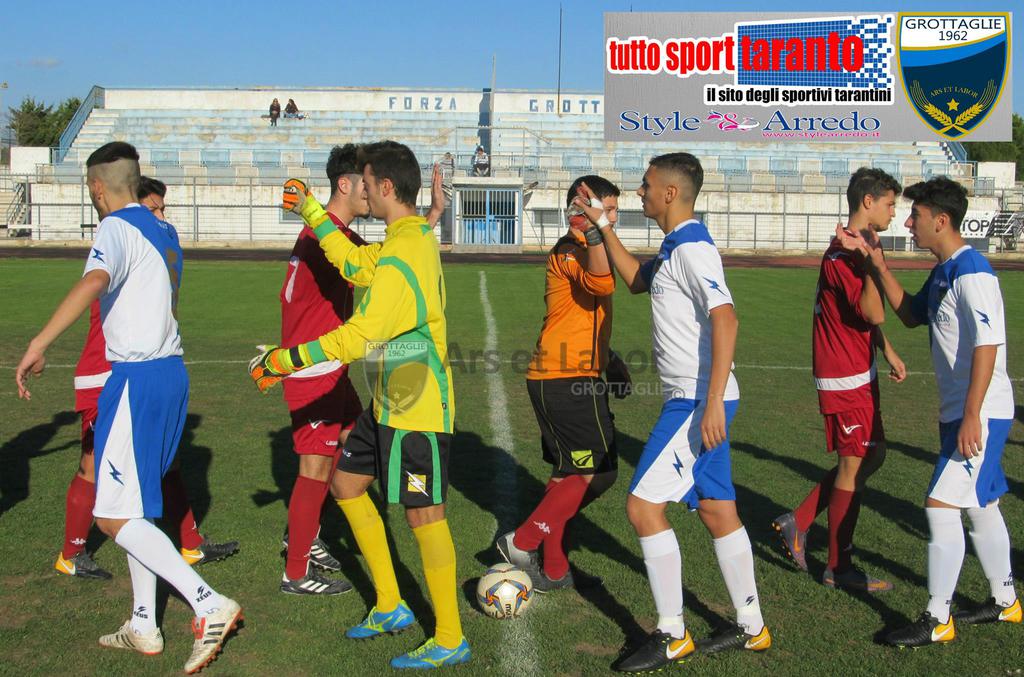 Nel pomeriggio la Juniores dell’Ars et Labor Grottaglie ha incamerato i primi tre punti stagionali ai danni del San Vito, 4 a 0 il risultato finale. Gara mai stata in discussione, i padroni di casa si sono dimostrati superiori ai brindisini che si sono presentati in campo con 10 ragazzi e senza nemmeno un cambio in panchina. Oggi, a prescindere da tutto, la priorità era vincere di conseguenza l’essere belli non era la necessità. Bisognava riscattare la dura sconfitta di Crispiano e così è stato ma sicuramente i grossi limiti presentati dagli avversari non ci consentono di parlare di una Juniores che in due giorni abbia cancellato, con colpo di spugna, le lacune emerse nelle due giornate precedenti. Di certo c’è che alcuni elementi visti in grosse difficoltà a Crispiano, contro il San Vito, hanno fatto vedere qualcosa di meglio. Due goal per tempo, una doppietta, una traversa, un palo e alcuni goal falliti per poco, questo è il riassunto dell’intera partita dove il San Vito non si è mai affacciato nell’area biancoazzurra. Vantaggio del Grottaglie con Mero lesto a calciare in rete una palla mal respinta dalla difesa; raddoppio ad opera di Darcante che corregge in rete, di testa, una punizione al centro di Castellano; nella ripresa sventola dalla distanza di Mero che fulmina il portiere avversario e infine Masella, di testa, risolve una mischia in area gonfiando la rete, da segnalare anche una traversa colpita di testa da Alfieri su calcio d’angolo e il palo colpito da Roberti con un tiro dall’interno dell’area di rigore. Vittoria meritata che alza il morale dei ragazzi e che porta un pò di tranquillità e serenità in un ambiente piuttosto scosso dalla sconfitta di mercoledì 1 novembre, tutto questo è da considerarsi come un punto di partenza per il prosieguo del campionato.