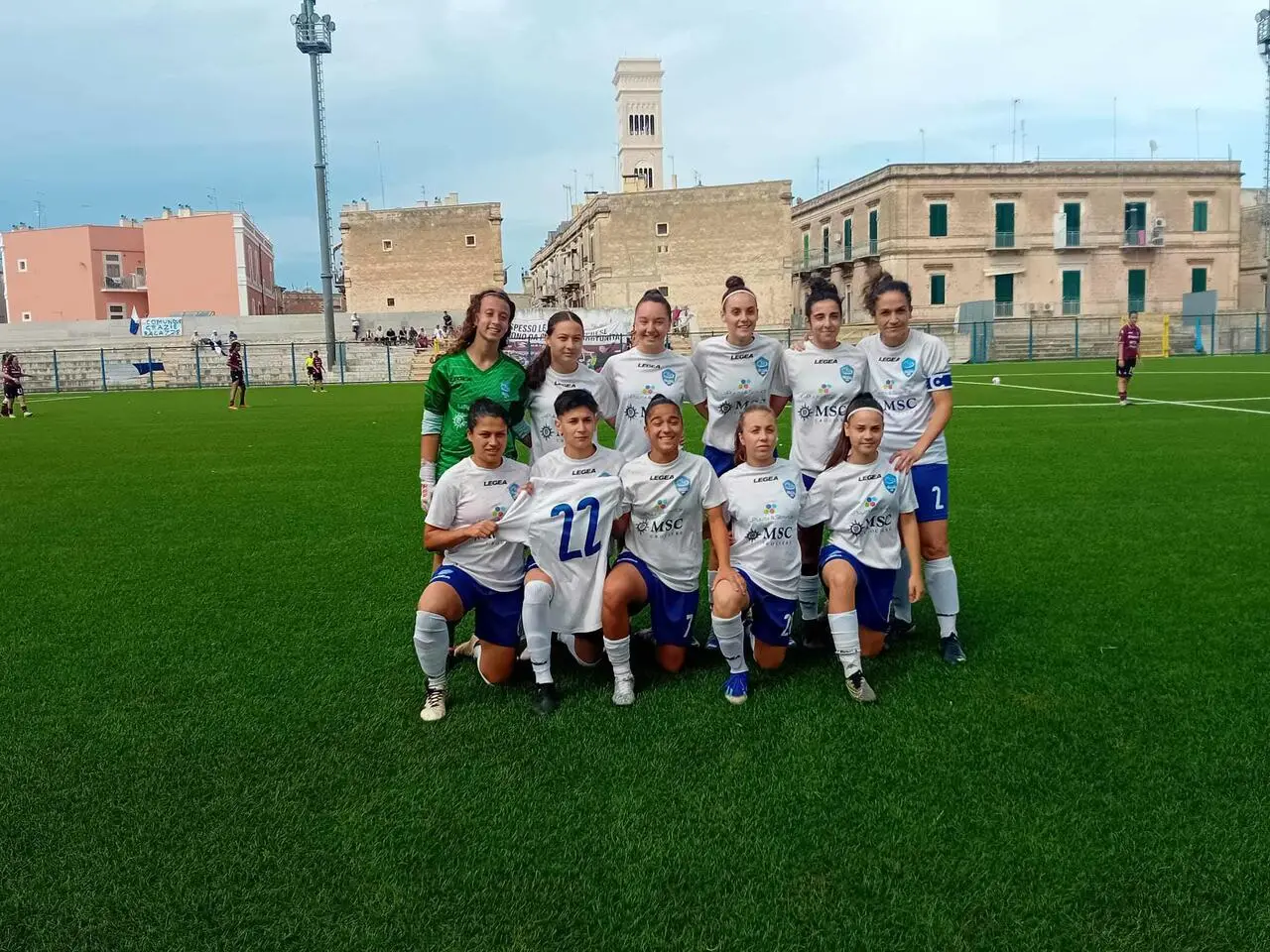 Devono passare 10' per vedere la prima occasione biancoazzurra con La Donna che sfiora la sfera in area. Quattro minuti più tardi Speranza recupera palla e lancia lungo per La Donna che passa la sfera a Scaringi che calcia su un difensore. Al 25' si vede la Salernitana con un cross dalla destra controllato da Di Bari. Dieci giri di lancetta più tardi ci provano ancora le campane con un tiro che termina al lato. Al 37' c'è un gran tiro da parte di un'atleta campana ma Di Bari è superlativa deviando sopra la traversa. Al 39' e al 41' si rivede l"Apulia prima con Scaringi su punizione e poi con Chiapperini che cicca la sfera. Dopo un minuto di recupero si va al riposo sullo 0-0.
