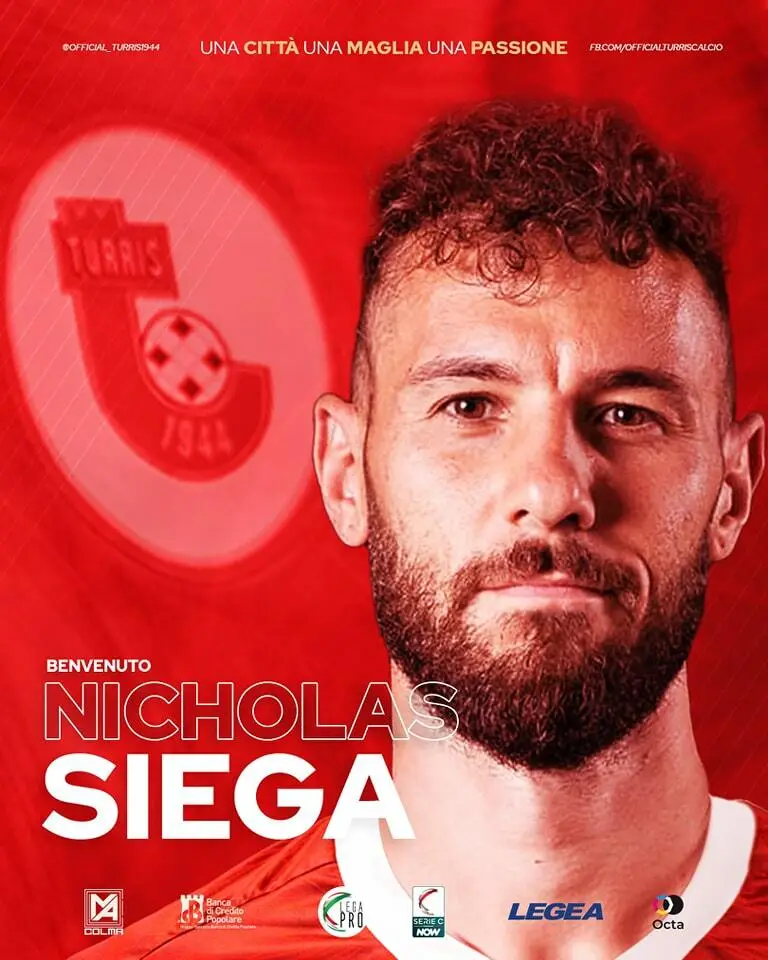 La S.S. Turris Calcio comunica di aver acquistato il calciatore Nicholas Siega a titolo definitivo dal Sudtirol.