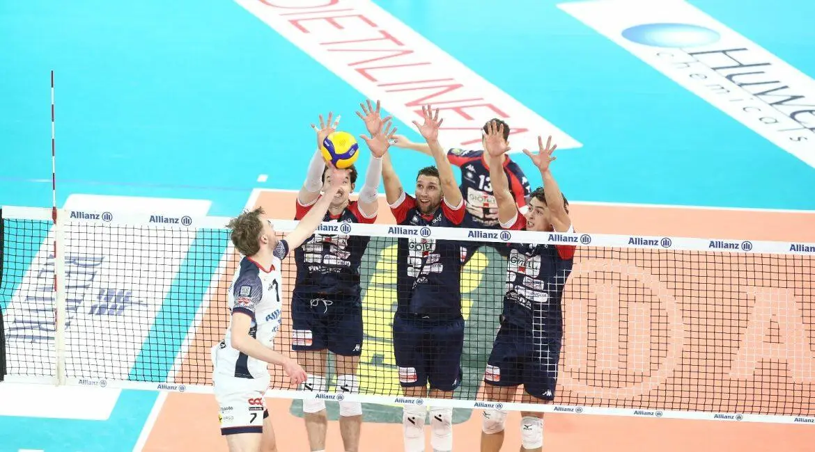 Allianz Milano: Porro 4, Louati 8, Schnitzer 6, Reggers 19, Kaziyski 7, Caneschi 5, Staforini (L), Zonta 0, Catania (L), Barotto 0, Otsuka 5. N.E. Larizza, Piano, Gardini. All. Piazza.