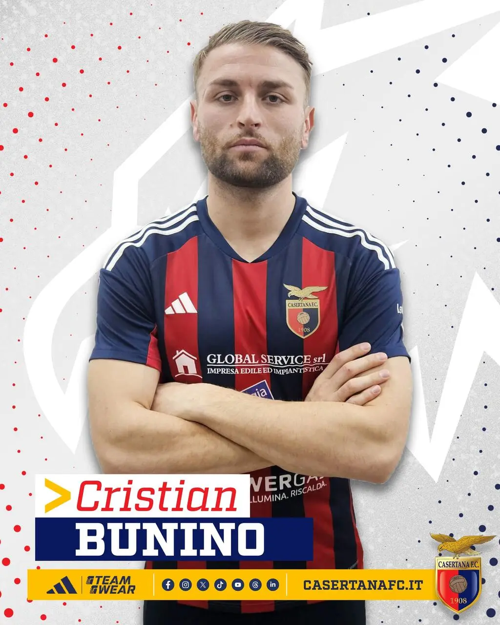 La Casertana FC comunica di essersi assicurata le prestazioni sportive del calciatore Cristian Bunino che arriva in rossoblù dalla Pro Vercelli a titolo temporaneo.