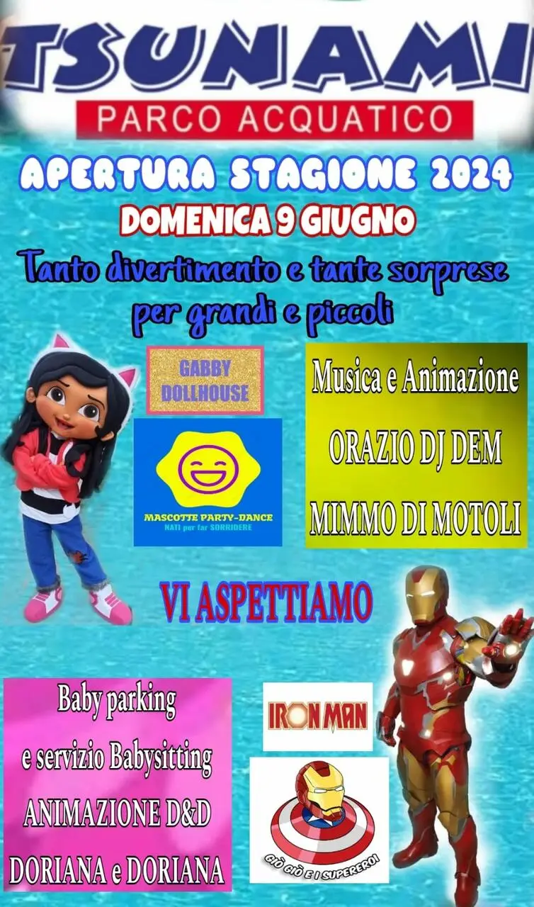 Domenica 9 giugno in occasione dell’apertura estiva del Parco Acquatico “Tsunami” di Francavilla Fontana sarà presente anche l’Associazione Giò Giò e i Supereroi con Iron Man che, dalle ore 15, intratterrà grandi e piccini scattando tantissime foto. Con lui presente anche l’animazione D&D di Doriana e Doriana oltre tante altre attrazioni per i più piccoli.