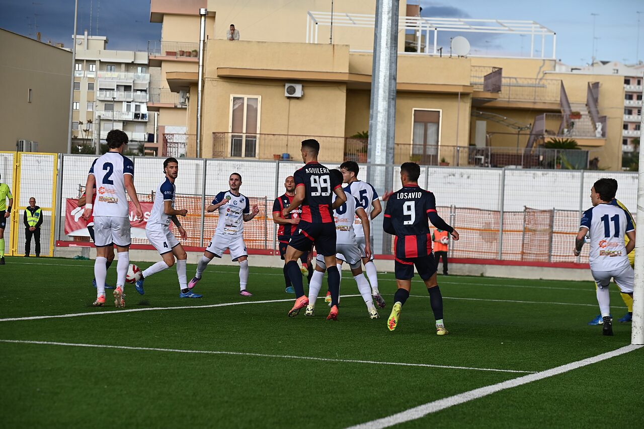 Due reti per tempo regalano la quarta vittoria consecutiva in campionato (la quinta compresa quella in Coppa italia contro il Bisceglie) ai ragazzi di Danucci che continuano la rincorsa in classifica verso le zone alte. Una gara mai in discussione con gli ionici che passano in vantaggio nel primo tempo con la rete di Zampa (la prima in maglia rossoblu) seguita dal raddoppio di Losavio; nella ripresa il Taranto “chiude i conti” con Guastamacchia e Monetti.