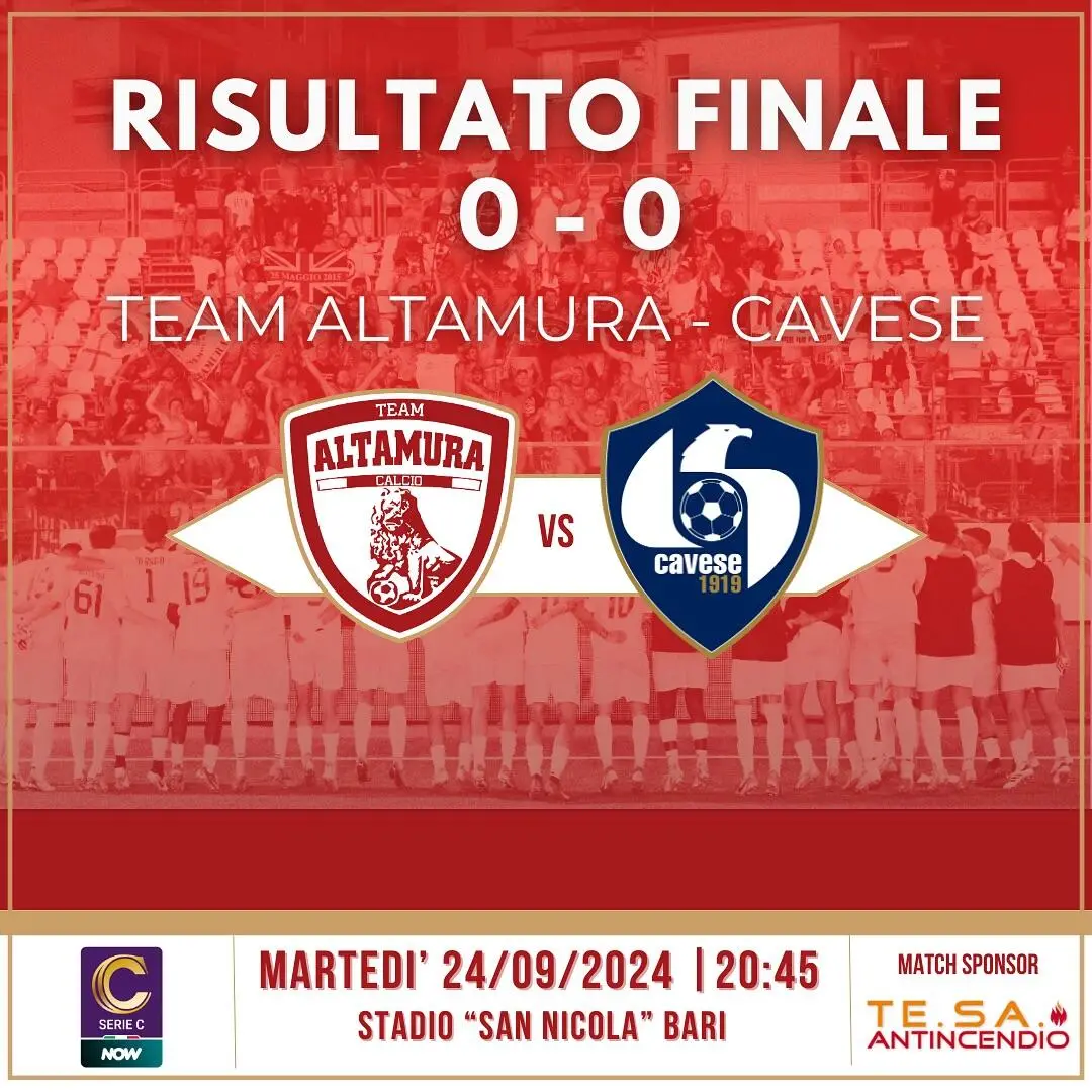 Ammonizioni: al 1' st Sadiki K. (Altamura), al 21' st Rolando M. (Altamura), al 24' st Silletti E. (Altamura) al 39' pt Diarrassouba A. (Cavese), al 43' pt Piana L. (Cavese), al 42' st Sorrentino D. (Cavese).