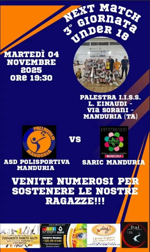 Sarà una giornata storica, quella di martedì 4 novembre, per il volley a Manduria infatti nella palestra I.I.S.S. L. Einaudi alle ore 19:30 si affronteranno per la terza giornata di campionato la Polisportiva Manduria e la Saric Manduria per il primo storico derby delle formazioni Under 18 della città messapica. Al momento in classifica, dopo le prime due giornate del torneo, la Polisportiva Manduria precede di un punto proprio la Saric M. In vista del derby abbiamo ascoltato il direttore sportivo della Polisportiva M. Ottavio Erario che afferma: "Giocare un derby fa sempre un certo effetto, le ragazze hanno preparato la partita con molta attenzione. Il fattore mentale sarà di fondamentale importanza. Questo potrebbe essere il nostro punto debole alla luce dell'età media della nostra squadra che è inferiore rispetto alle altre squadre del girone. In ogni caso questo aspetto ci dà la possibilità di ampliare la nostra esperienza e renderla utile nelle altre categorie under. A tale riguardo gli obiettivi della società sono nel medio-lungo periodo diciamo pure nei prossimi 3-4 anni, del resto le nostre ragazze hanno deciso di sposare questo progetto e ci sono rimaste fedeli non accettando lusinghe di altri Club. Sono determinate a lavorare in ogni allenamento con costanza e abnegazione, non sono in vista del sentito derby di martedì, ma per una crescita in prospettiva futura”. La chiosa finale è dedicata alle indiscrezioni rimbalzate dal “volley mercato” che vorrebbero il giovane dirigente messapico vicino ad altre realtà sportive del territorio: “Io rimango fedele alla Polisportiva Manduria e soprattutto alle ragazze che ogni giorno credono in me per questo non accetterò mai altri incarichi”. Buon derby!