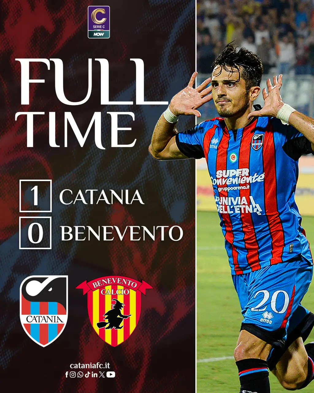 Serie C/C: il Catania batte il Benevento con un giol di Carpani
