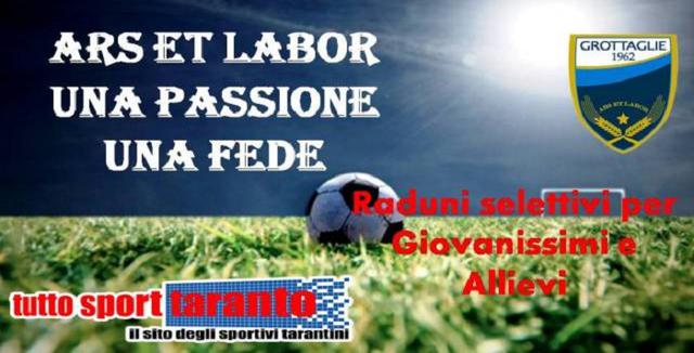 Lo staff tecnico del settore giovanile dell’Ars et Labor Grottaglie ha organizzato, per il 17 agosto, due stage per giovani calciatori da inserire nelle rose delle squadre della categoria Giovanissimi e Allievi per l’anno calcistico 2017/18. I due raduni saranno così articolati: